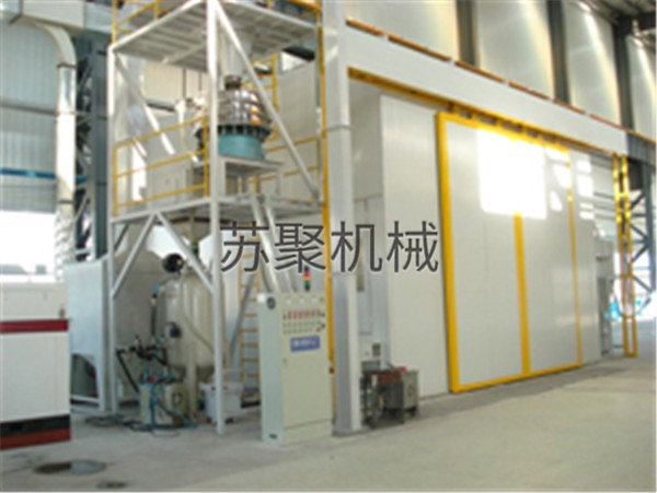 自動機械式回收噴砂(丸)房為平車往復(fù)式專用噴丸機,它由噴丸室體、噴丸器、螺旋輸送機、提升機、分離器、彈丸控制系統(tǒng)、照明系統(tǒng)、除塵系統(tǒng)、輸送平車、電控系統(tǒng)等部分組成。