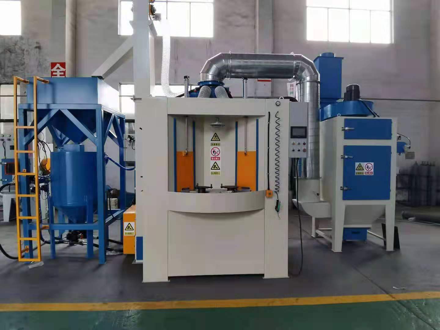 3、大轉(zhuǎn)盤連續(xù)轉(zhuǎn)動,無極變頻可調(diào),根據(jù)客戶噴砂要求,自行調(diào)整。