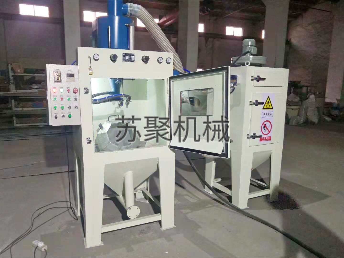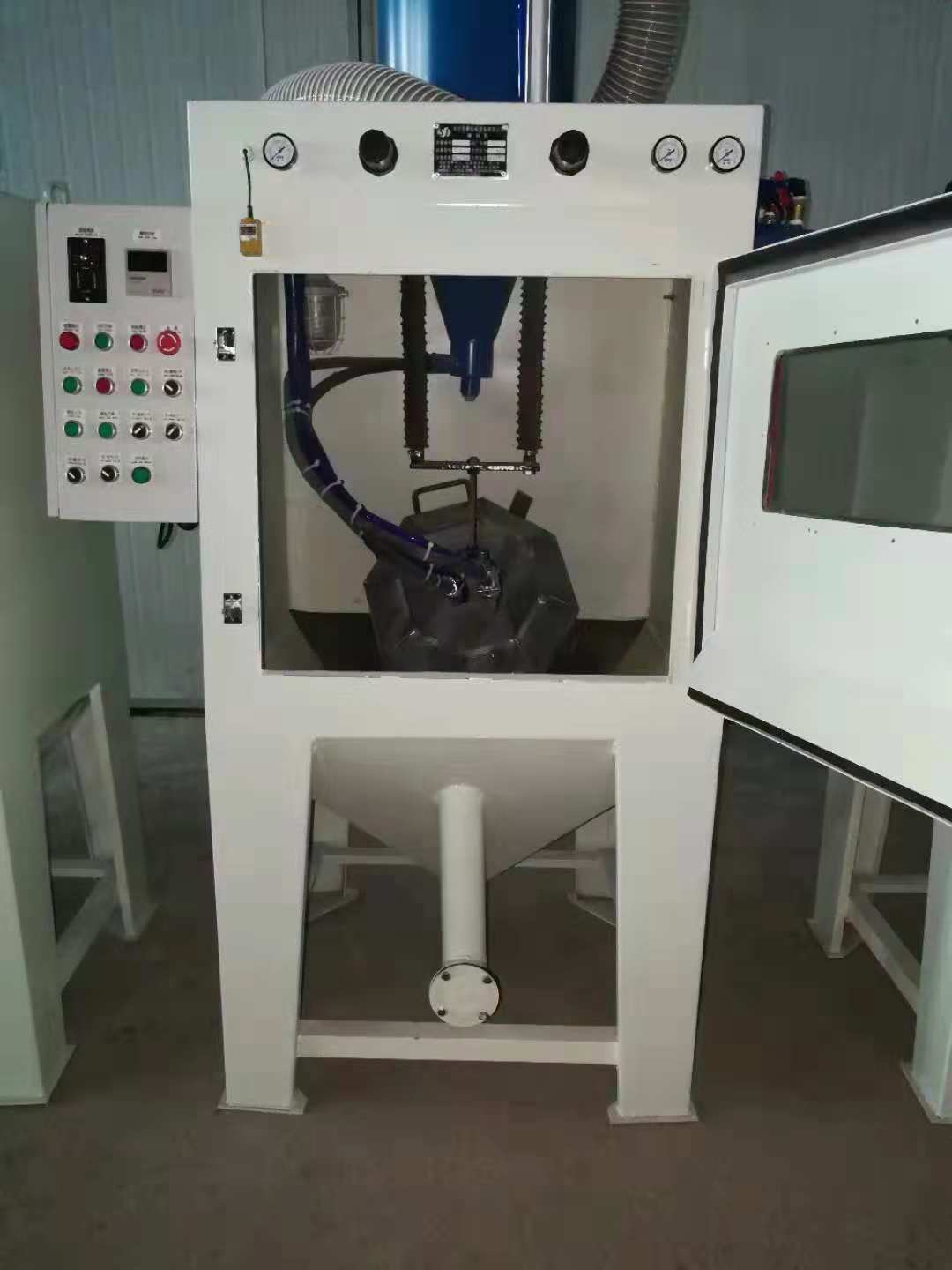 滾筒式自動噴砂機整個機器由主機外箱、除塵、旋風分離器、滾藍組成。旋分離器以電焊焊接在滾筒式自動噴砂主機背后,外形不但美觀同時又減少占實地面積,擺放方便。